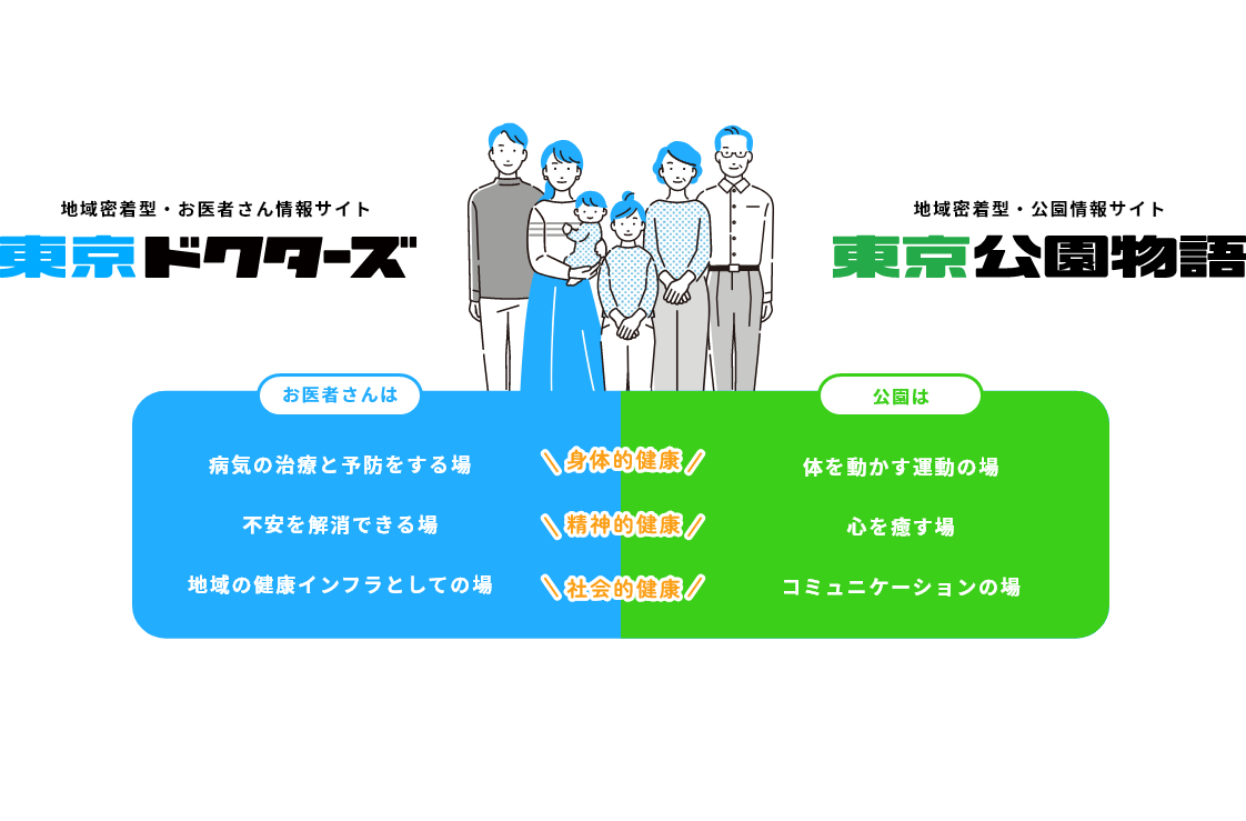 「東京公園物語」は東京都内の公園を検索できる公園情報サイトです。公園はただの憩いの場ではなく、健康を促進し、予防医療を支える重要な役割を果たします。「東京公園物語」では、公園を通じて心身の健康や地域の健康を守ることを目的に、幅広い情報を提供します。